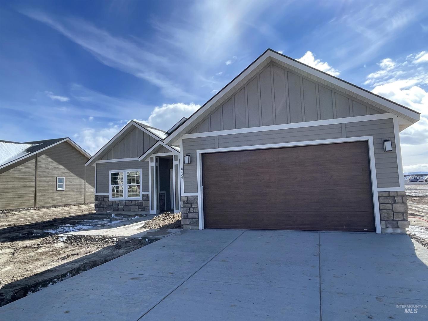 Located at 939 Quartz Street in Kimberly, Idaho, this 4 bedroom, 2 bathroom home offers approximately 1,454 square feet of living space with a 2-car garage. The open-concept layout connects the living area, dining space, and kitchen, which features a center island with sink, stainless steel appliances, solid surface countertops, and tile backsplash. The primary suite includes an en-suite bath with dual vanities. Additional features include a tray ceiling in the living room, ceiling fans, recessed lighting, vinyl plank flooring in main areas, carpeted bedrooms, and a covered entry. The home offers modern finishes and functional design throughout. Buyer to verify all information.