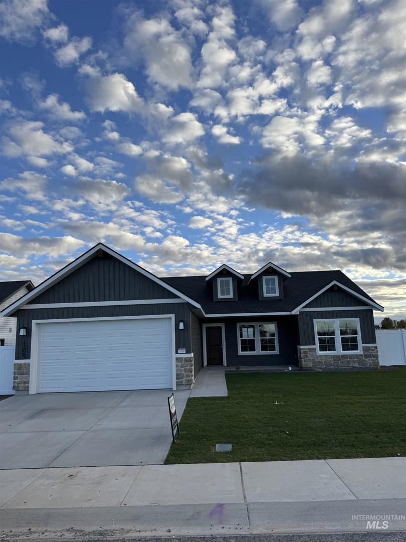Welcome Home to 1295 Terra Avenue, Twin Falls! This brand-new 4-bedroom, 3-bathroom home offers 1,438 square feet of beautifully designed living space. The thoughtful floorplan combines modern comfort with timeless style — featuring luxury vinyl plank flooring, a bright and open great room, and a contemporary kitchen with quartz countertops, stainless steel appliances, and a spacious island perfect for entertaining. Enjoy the convenience of a two-car garage, a fully fenced backyard, and front landscaping already in place. The exterior showcases striking curb appeal with its deep-toned siding, stone accents, and covered entry. Inside, you’ll find comfortable bedrooms with plush carpeting, modern light fixtures, and well-appointed bathrooms with marble-look countertops and designer tile backsplashes. Located in a welcoming Twin Falls neighborhood, this move-in-ready home blends function, efficiency, and quality craftsmanship — all built with Wolverton Homes’ trusted attention to detail. All information is deemed reliable but not guaranteed. Buyer to verify all details.